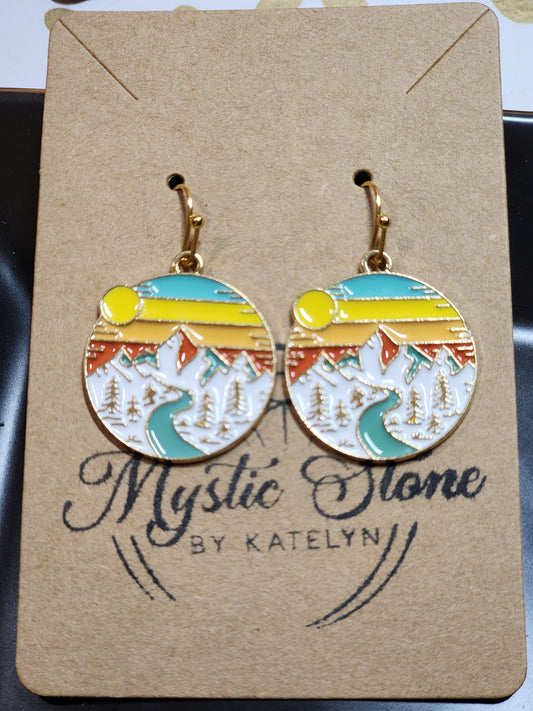 Gold plated mountain sunset charm style earrings | fun earrings, gold plated, enamel, hypoallergenic, nickel free, cute earrings