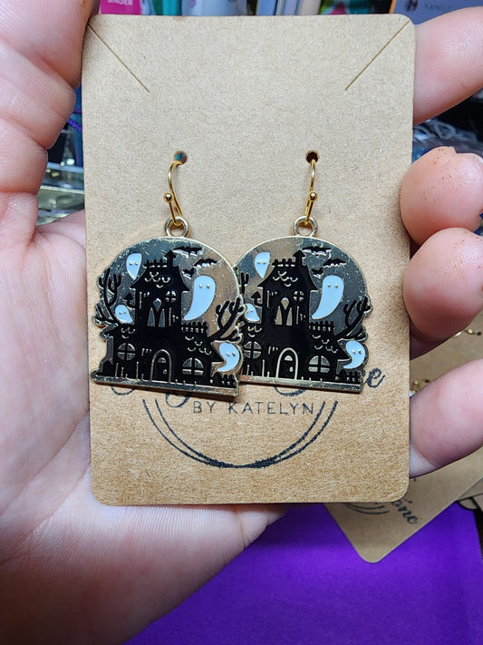 Gold plated "wicked " ghost jack-o-lantern charm style earrings | fun Halloween earrings, enamel hypoallergenic nickel free