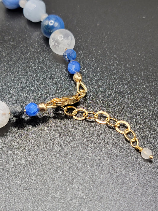 14k Gold-Filled Kyanite, Angelite & blue flash moonstone Adjustable Gemstone Bracelet