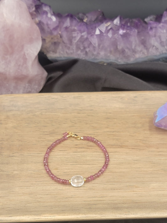 Dainty 14k Gold-Filled Pink Tourmaline and Crystal Quartz Adjustable Gemstone Bracelet