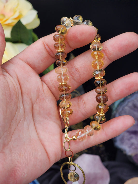 14k Gold-Filled lemon & Beer Quartz Adjustable Gemstone Bracelet