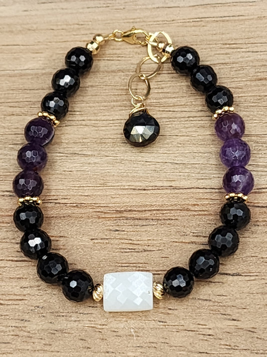 14k Gold-Filled Black Spinel, White Moonstone, Amethyst and Mystic Labradorite Bracelet