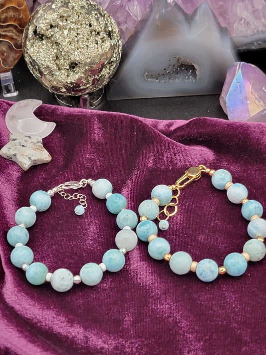 14k Gold Filled or Sterling Silver Larimar Bracelet