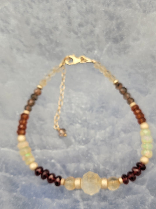 14k gold-filled Multi-Gemstone fall vibes Adjustable Bracelet.Garent, Opal, Andalusite & Citrine