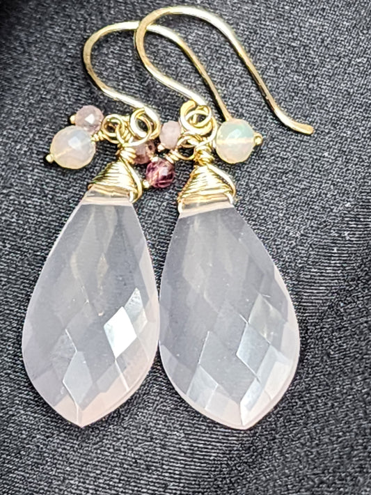 14k Gold Filled Peruvian Chalcedony, Pink Topaz & Morganite Gemstone Earrings
