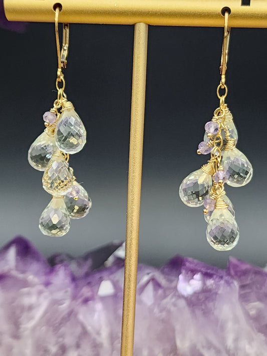 14k Gold-Filled lavender Amethyst & Rainbow Quartz Gemstone Earrings