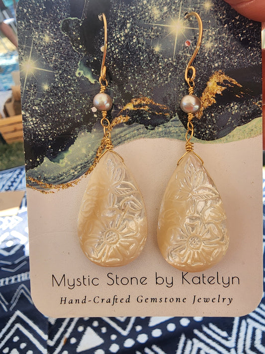 14k Gold-Fillef Black Moonstone & Grey Pearl Earrings