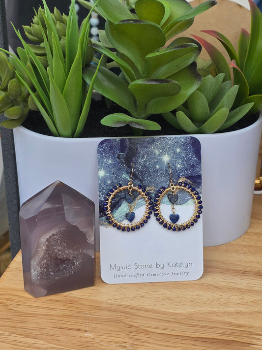 Amethyst, Rhodonite, Lepidolite & Rose Quartz Gemstonr Heart dangle earrings