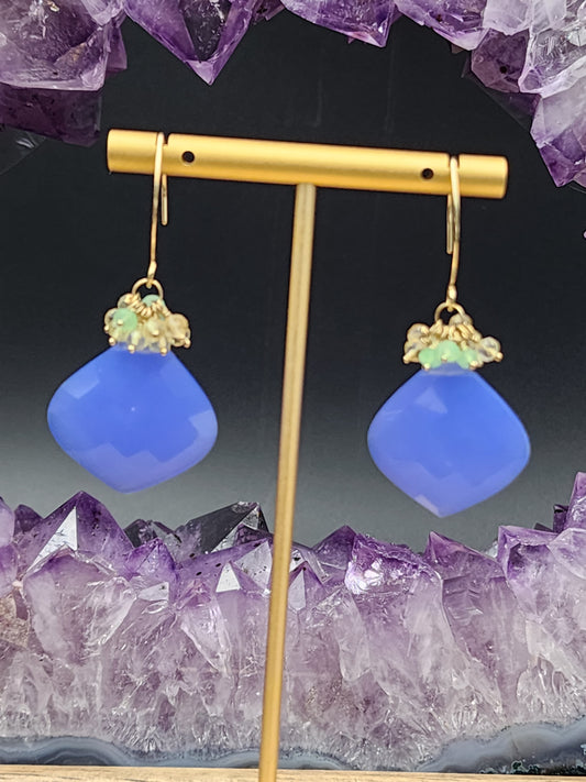 14k Gold-Filled Blue Chalcedony, Lemon Quartz, Chrysoprase & Citrine Earrings