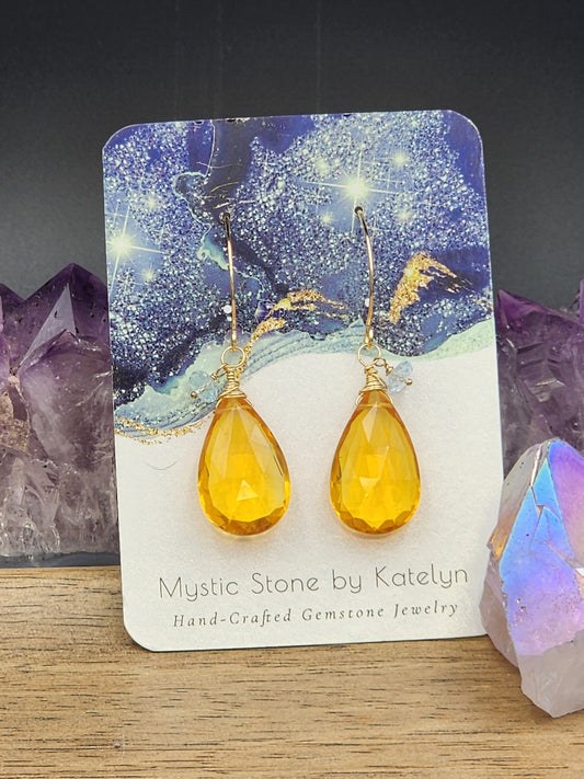 14k Gold-Filled Hydro Citrine Quartz and Blue Topaz Gemstone Earrings