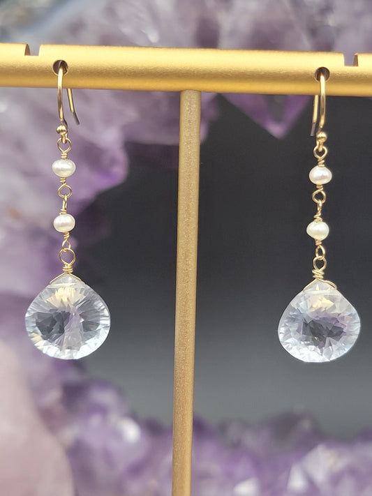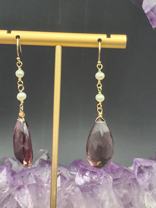 14k Gold-Filled "Kunzite" Quartz & Pearl Earrings