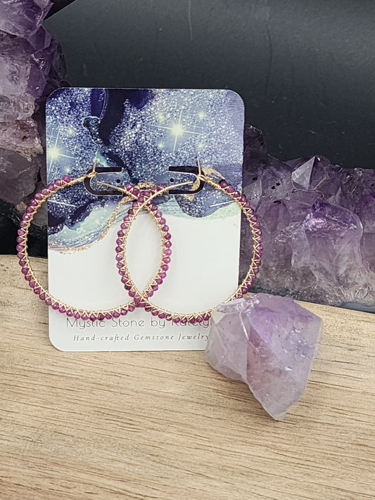 14k Gold-Filled Ruby 50mm Gemstone Hoop Earrings