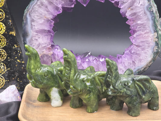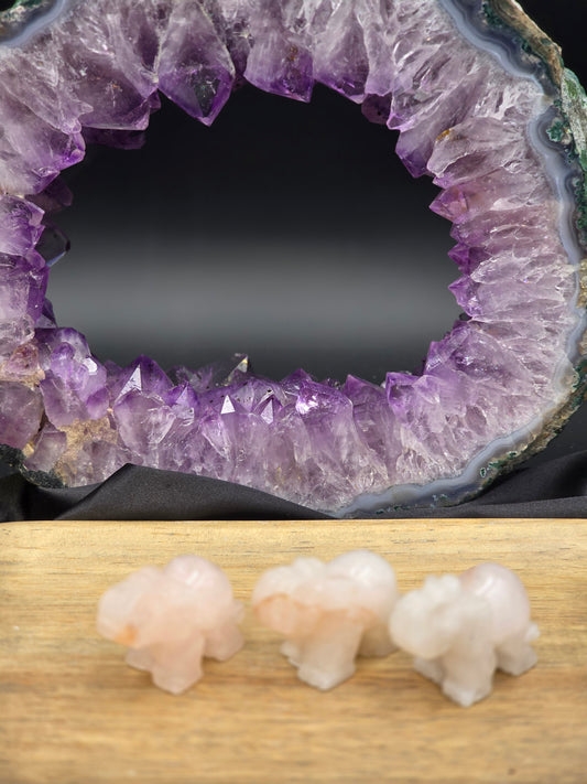 Hand Carved Gemstone Elephants - Tiger Eye, Rose Quartz or Green Aventurine